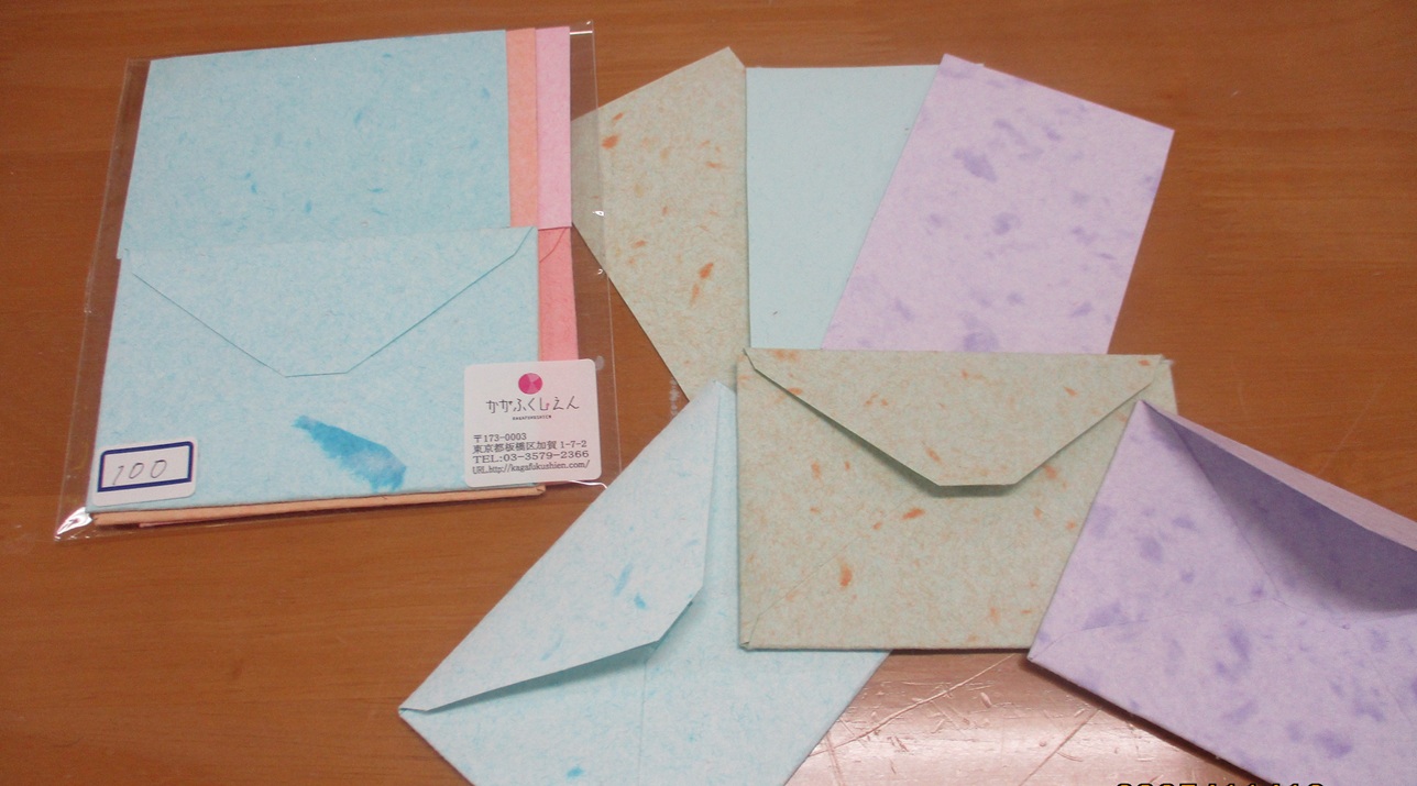 利用者と職員の協力のもと、かわいいレターセットのできあがり。