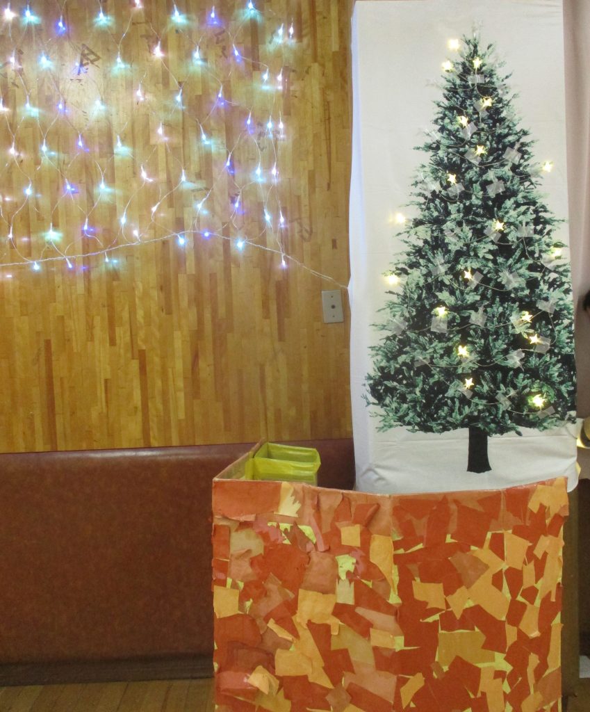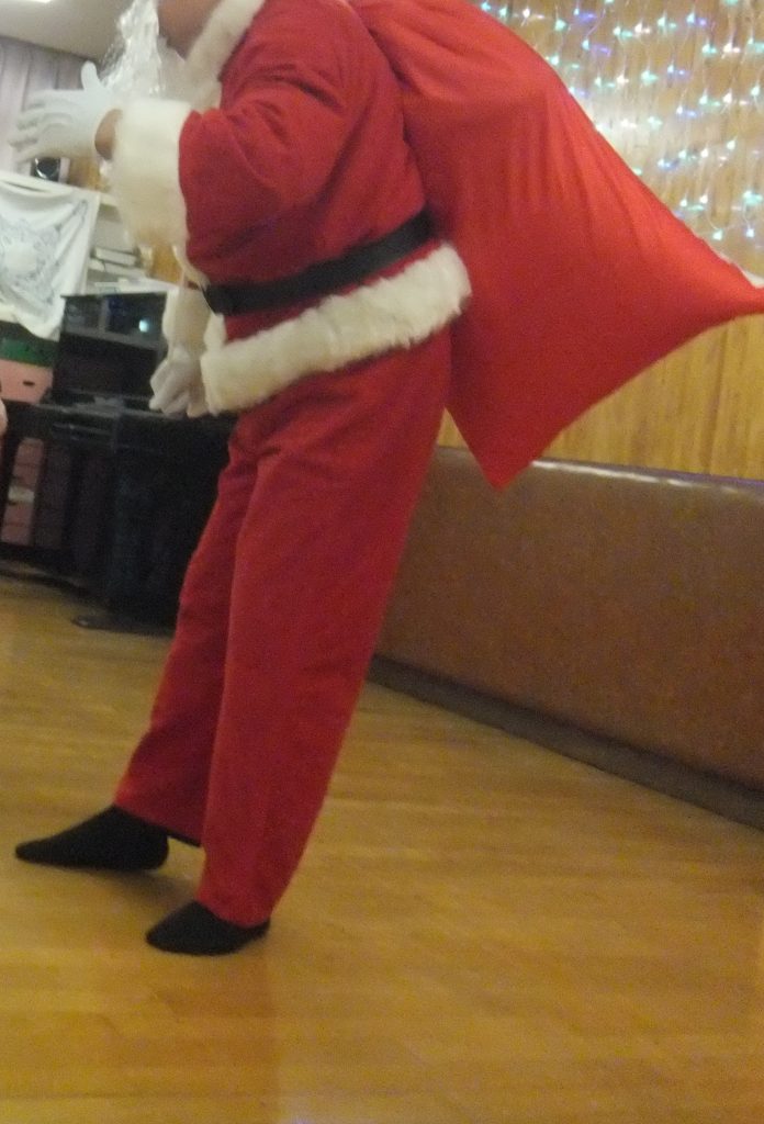 まずは各クラスでクリスマスにちなんだ親子製作を行い、その後、3クラスがホールに集合!親子でそれぞれ作ったツリーやブーツを飾り、続いて暗闇で光るブラックパネルシアターを楽しみました。そしていよいよサンタさんが登場…!自分から笑顔で近づいてみる子や少し驚いてしまう子、恥ずかしがってお母さんの膝に顔をうずめる子など、様々な表情が見られました。ご家族と一緒に、季節ならではのひと時を過ごすことができました😊